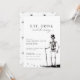 This editable cocktail Halloween party invitation sets the scary tone for your adult Halloween party. The DAMIEN Collection features a white background with a mix of fancy display, serif and script fonts in black. A vintage Halloween skeleton wearing a top hat, covered in spiders completes this scary halloween party invite.