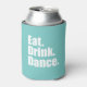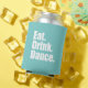 FRONT AND BACK DESIGN -- Eat. Drink. Dance. | Wedding Reception Favour ~ Colours are Caribbean Tropical Teal and Bold Block White lettering. A fun CAN COVER to use at your Rehearsal Dinner or Wedding Day. Customise with your names and wedding date that will show up on the back. If you would like a different colour to match your wedding colours please email paula@labellarue.com before placing and order and a new template will be created.