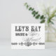 Elegant and fun fonts announce the message, "Let's eat, drink and get married!" on a delightful whimsical Bridal Shower invitation postcard. In a clean, crisp, black and white colour palette it's the best of vintage with a modern twist. Add your Bridal Shower invitation easily to the reverse side.