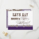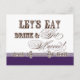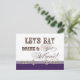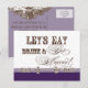 Elegant and fun fonts announce the message, "Let's eat, drink and get married!" on a delightful whimsical Bridal Shower invitation postcard. In a clean, crisp, lavender, plum purple, chocolate brown and white colour palette it's the best of vintage with a modern twist. Add your Bridal Shower invitation easily to the reverse side.