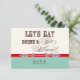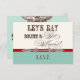 Elegant and fun fonts announce the message, "Let's eat, drink and get married!" on a delightful whimsical Wedding Invitation Ensemble. In a warm, retro colour palette of vintage red, aqua blue, cream and chocolate brown - it's the best of vintage with a modern twist. The front side has the text and your names with your wedding date. On the reverse side are two printer's ornaments with elegant hand calligraphy font ampersand and the text "Celebrate with us" in unique and fun fonts along with your wedding invitation information. There is a complete suite of products available with this design and we can do it in any colour combination(s) you desire.