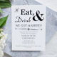 Invite friends and family to help you celebrate your recent marriage with this funky retro black and white Eat, Drink & Be Married! elopement party invitation.
