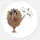 A cute turkey protesting Thanksgiving by holding up a picket sign that says "Eat Ham!" on it.