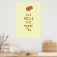Eat Pizzas and Party On Funny Pizza Pepperoni Poster Print. A funny pizza joke poster with two pizzas pepperoni and fully customisable text slogan "Eat Pizzas and Party On". This great funny pizza poster print is fully customisable, add your texts and images! A great pizza gift for the big pizza pepperoni fan!