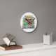 The clock did not take as long to arrive as I thought it might and was extremely well packaged. I didn't do the measurements so I didn't realize it is a little smaller than the average clock but that does not matter (just make sure you check if that's important to you).It is really nifty! It seems very solid and well made not flimsy at all. It has been going well and has kept good time in its few weeks on my wall. Nice product. Gets noticed too! Nicer in real life than the picture but true to the picture