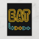 EAT retro art based on a vintage neon restaurant sign. The letters are yellow and red, the arrows are blue, red and yellow. Fun, funky advertising art for people who cook or eat.