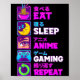 Eat Sleep Anime Gaming Repeat Kawaii Otaku Anime M Poster
