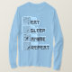 Funny anime themed design showing manga style stroke illustrations and the caption “eat sleep anime repeat” in english and japanese.