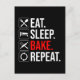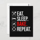 Eat. Sleep. Bake. Repeat. This funny quote baking accessory is a great gift for a man, woman, teens & kids who love to bake in the kitchen. Also perfect for a baker or a bakery worker. If you're a home baker, love the culinary arts, and love to prepare delicious bread, cookies, muffins, cakes or cupcakes in the oven, then this humourous design is for you.
