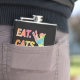 Celebrate your feline affection with this vibrant flask showcasing the phrase "Eat, Sleep, Cats, Repeat." Perfect for cat enthusiasts, this artwork captures the daily joy of living with cats.
