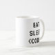 Eat sleep code Funny motivational quote coffee mug for programmer or coder. Cute Birthday gift idea for web developers, software engineer, game developers, internet geeks, webdesigners, nerds, website maker, tech startup, app builder etc. Geeky office humour. Pixelated digital text design. Custom cup with humourous saying / inspirational expression. Black and white drinkware for home and office. Buy one for coworker, employee, company boss, business partner, friend, dad, father, son, wife, daughter etc. Change quantity to get the cheap bulk pice.