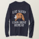 You already have the personality so add this Keep Eat Sleep Coon Hunt Repeat style and you make a perfect match. It features a playful message, and an artistic design.