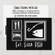 Striking black, white and grey coloured sign board style graphics depicting the necessities of life. Small eat and sleep icons using the standard food service knife and fork, and motel lodging roof and bed pictures. Extra large FISHING graphic showing a fish head and fishing hook, because of course fishing matters more than eating and sleeping!