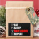 Eat. Sleep. Ham Radio. Repeat. Funny Amateur Ham Radio accessory would be a great gift for a hobbyist ham radio operator to wear in their ham shack. Do you love to operate shortwave & ham radios as a hobby? Do you have an antenna on your roof or backyard? Do you know all the best frequencies? Then this design is for you! Has a graphic of a broadcasting radio tower.