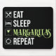 Eat Sleep Margaritas Repeat. Funny margarita lover accessory for men and women margarita and tequila cocktail drinkers. Great for a Cinco De Mayo party, during a summer vacation or holiday, cruise or spring break. If you love drinking refreshing lime margaritas and mixed drinks on a tropical beach, while eating tacos, or at a bar with your señoritas on a girl’s night out, this design is for you.