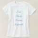 This t-shirt captures the essence of a nurse's relentless routine with its crisp "Eat, Sleep, Nurse, Repeat" lettering. The minimalist design in a serene blue hue speaks directly to the heart of the nursing profession—dedication, perseverance, and an unwavering cycle of care. Each word is spaced evenly, symbolising the structured rhythm of a caregiver's daily life. The choice of a clear, readable font reflects the straightforward and essential nature of nursing. With a touch of whimsy, this t-shirt is a nod to the heroic, yet human, side of those in the nursing field, affirming their role is not just a job, but a way of life.