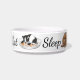 I love the pet bowls I bought for my 3 Granddogs when they come over my house. They are the perfect size to feed them when they are here for a visit. The design of their names on the bowls is great!