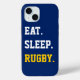 This deep blue phone case is designed for the ultimate rugby fan, emblazoned with the bold statement "EAT. SLEEP. RUGBY." in bright yellow letters. The case not only protects your device but also serves as a testament to the wearer's passion for the rugged sport of rugby. It’s an ideal accessory for anyone whose day revolves around the thrill of the game, whether they're a player, a coach, or a dedicated supporter.