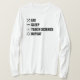 I love this shirt. I had written to the artist asking her if this picture was available on a shirt, and she wrote me back telling me where I could find the shirt. These shirts can be custom made to have a different saying. I loved this saying and went with it. The artist wrote me back later to tell me that she had seen my order go through. How's that for service? Pretty special. It's just as displayed. Perfect!