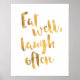 Eat well laugh often typography quote poster print features modern hand written typography in faux gold foil Also comes in different colours.