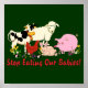 A cow, sheep, pig, rabbit and a chicken say "Stop eating our babies!" Nice way to remind meat eaters that they're eating someone's children.