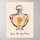 Eau de parfum French perfume slogan with a fashion illustration from an original artwork by artist Sacha Grossel of a perfume vintage perfume bottle. This watercolour illustration of a luxury brand perfume is in pop art style and the background colour is customisable.