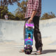The Neon Racer brings all the vibrancy of 80's arcade games and culture under your foot. This original artwork will make you the king of the park.