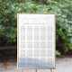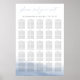 Wedding guest seating chart in dark grey and white with coastal watercolor detailing along the bottom features "please find your seat" at the top in elegant calligraphy script lettering, with your guest table assignments beneath. Space provided for up to 25 tables.