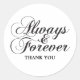 Modern and stylish Always and Forever Wedding Thank You Stickers featuring a beautiful handwritten typography text design in black and white. These simple and elegant stickers set the tone for a classy and romantic wedding and is easy to customise with your wedding details. Click "Customise It" to find more personalisation options. Background colour can be changed to any colour you would like.