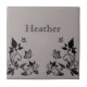 Sweet and dainty Butterfly Floral Tile with a muted dusty grey background and ebony butterflies and floral vine embellishments. This elegant floral tile would complement any decor! Easy to customise, simply add the personalised text of your choosing in the text fields provided. Click on the "Customise It" button to find additional personalisation options.