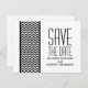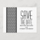 Chic and modern Chevron Border Save the Date Postcard featuring a simple chevron pattern border in black and white. This stylish design will set the tone for an elegant wedding. Easy to customise, simply add your wedding details in the text fields provided. Click "Customise It" to find more personalisation options.