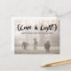 Trendy and modern Elegant Sketched Love and Light Holiday Photo Postcard featuring a brushstroke handwritten typography design in black. This stylish holiday photo card is easy to customise with a photo and personalised Christmas greeting. Click "customise it" to find additional personalisation options.