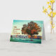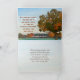 Inspirational quote custom greeting card depicts a beautiful autumn nature photograph including trees with fall leaves, blue skies and a green grass field. It features Bible Verse Ecclesiastes 3:11 , "He makes all things beautiful in his time."