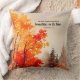 Inspirational quote scripture fall watercolor throw pillow depicts beautiful trees with colourful red and orange autumn leaves. It features Bible Verse Ecclesiastes 3:11, "He has made everything beautiful in its time."