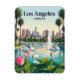 The lake reflects both nature and urban life, with palm trees and skyscrapers sharing the same serene setting, especially beautiful in the warm California light.