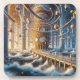 The warm, golden light emanating from the central clock contrasts beautifully with the cool, deep blues of the surrounding water and sky, hinting at both dawn and dusk, past and future. This piece is a perfect blend of intricate detail, fantastical architecture, and a sense of nostalgic awe, making it ideal for those who appreciate art that stimulates the imagination and celebrates the beauty of instrumental music's narrative power.