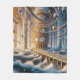 The warm, golden light emanating from the central clock contrasts beautifully with the cool, deep blues of the surrounding water and sky, hinting at both dawn and dusk, past and future. This piece is a perfect blend of intricate detail, fantastical architecture, and a sense of nostalgic awe, making it ideal for those who appreciate art that stimulates the imagination and celebrates the beauty of instrumental music's narrative power.