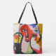 Eclectic Boho Bright Red Blue Yellow Face Illustra Tote Bag