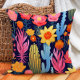 This decorative pillow bursts with vibrant desert charm, featuring colourful cacti and succulents in bright shades of yellow, pink, and blue, accented by bold orange and red flowers. Set against a deep navy background, the lively design creates a striking contrast, making it perfect for adding a bold pop of colour to any space. Ideal for eclectic, boho, or southwestern-inspired décor.