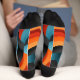 Ecliptic Fusion: Blue, Black, and Orange Abstract Socks