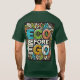 This t-shirt design features the bold phrase "Eco Before Ego" in vibrant, multicolored fonts. Surrounding the text are nature-inspired elements such as leaves and vines, symbolising eco-consciousness. The earthy tones of green and brown, along with splashes of bright colours like blue, yellow, and pink, emphasize the environmental message. The design is clean, artistic, and perfect for promoting an eco-friendly mindset.