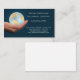 Professional business card featuring a hand offering an illuminated globe on a dark blue background.