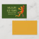 A modern stylish business card suitable for an adventure travel or eco tours or wildlife tours business. This card features a cute illustration by Sacha Grossel of a gecko lizard. Text can be fully customised to suit you needs. Eco green and orange theme. Modern cute and colourful
