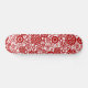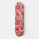 A skateboard with interesting and diverse abstract design consisting of various circular shapes in different styles connected by thin lines like a network or ecosystem.