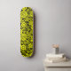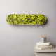 A skateboard with interesting and diverse abstract design consisting of various circular shapes in different styles connected by thin lines like a network or ecosystem.