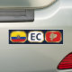 Bumper sticker displaying an attractive combination of the Ecuadorian flag, map and 2 letter country code.
