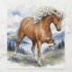 My painting style has grown over the years and I decided to start a new collection, this time in watercolor only. This new painting is based off my original Golden Tolt pen, ink and watercolor pencil. A beautiful Silver Bay Icelandic horse with flowing mane Tolts gracefully. The scene includes mountains, pine trees, and a serene lake in the background.