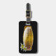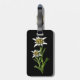 Elegant custom luggage tag done in black, with pretty artwork of the Alpine flower Edelweiss, on the back. The front has a golden brown plaque, with custom black text, and decorated with Edelweiss blooms. Personalise the text to suit your needs. Lovely way to spot your luggage from a distance, great for backpacks and messenger bags too.