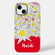 A red phone case with a bold edelweiss pattern . Personalize it with your name using the template .