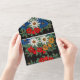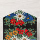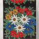 An image of a floral pattern with a needlework look of Edelweiss white Alpine flowers of Europe on your product. Blue, red, yellow, and white colours. Leontopodium alpinum of Switzerland, Germany, and Austria.